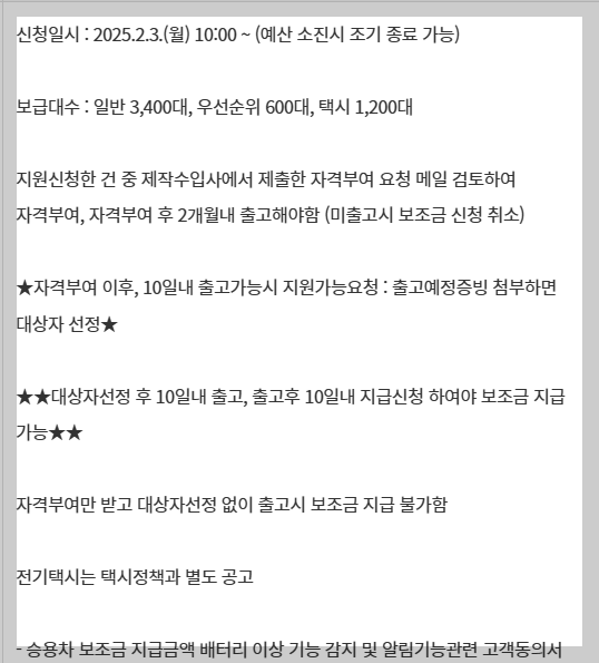 - 주행거리 기준 강화: 기존보다 더 긴 주행거리를 확보한 차량이 높은 보조금을 받게 됩니다.